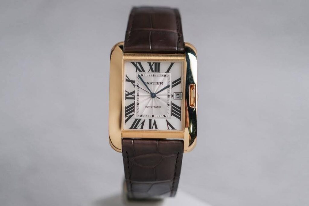 ขนาด 36 x 47 หน้าปัด Silver Dial แกะลายกิโยเช่สวยงาม ตัวเรือนทองคำ 18K Rose Gold เม็ดมะยมเป็นเอกลักษณ์ตกแต่งด้วย Blue Sapphire เครื่อง Automatic และสายหนังจระเข้สีน้ำตาล หรูมากๆ