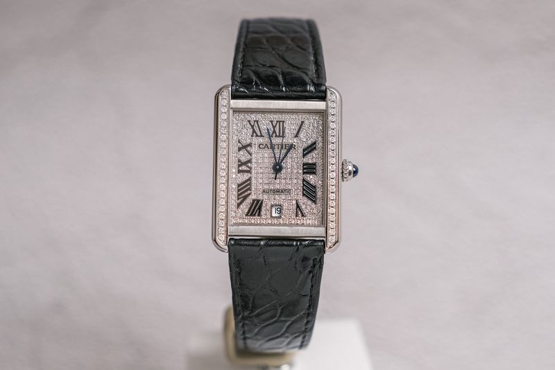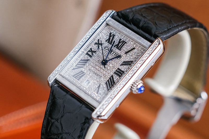 ขนาด 31×40 mm. เป็นไซส์ XL ใหญ่ที่สุด หน้าปัด Diamond Pave Dial มีช่องวันที่ ตัวเรือน Steel ฝังเพชร After Setting ระยิบระยับ ใส่คู่กับสายหนังสวยๆ ได้เครื่อง Automatic ด้วยครับ เรือนนี้ใส่สวยที่สุดครับ ไซส์กำลังดี ไม่เล็กไป ได้แบรนด์หรูระดับโลกฝังเพชรงามๆ