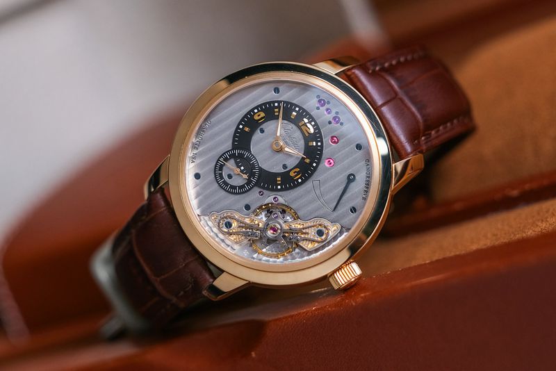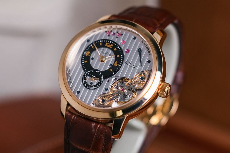 ขนาด 42มม หน้าปัดโชว์จักกรอกและฝีมือการขัดลายที่แสนประณีต จัดวางเข็มแบบ Off Center ดูมีชั้นเชิง พร้อม Small Seconds และ Power Reserve ตัวเรือนทองคำ 18K Rose Gold หนักๆตันๆเลยครับ หรูหรามากๆ ด้านหลังโชว์เครื่องไขลานที่สวยไม่แพ้กัน ใส่กับสายหนังหล่อมากๆครับ