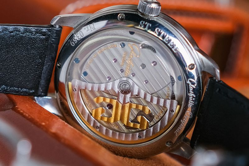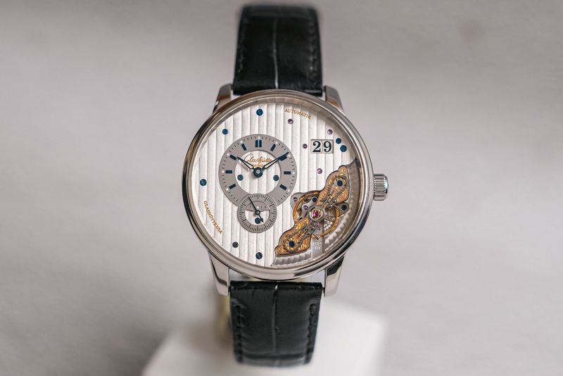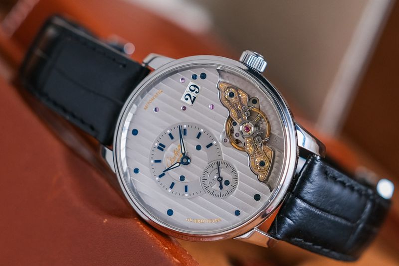 ขนาด 42มม หน้าปัดโชว์จักกรอกและฝีมือการขัดลายที่แสนประณีต จัดวางเข็มแบบ Off Center ดูมีชั้นเชิง พร้อม Small Seconds และ Power Reserve ด้านหลังโชว์ Automatic ที่สวยไม่แพ้กัน ใส่กับสายหนังหล่อมากๆครับ