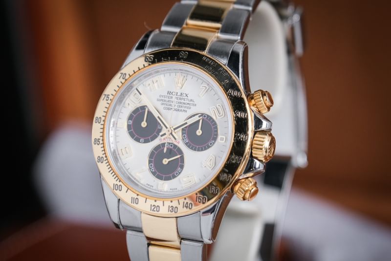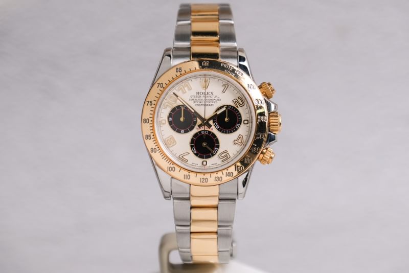 ขนาด 40 มม. หน้าปัด Panda Dial. หน้าขาววงดำ หลักอารบิคสวยงาม หรูหรา ตัวเรือน 2 tone steel & 18k Gold ขอบสวยงามเลขลึกไม่มีลอก เก็บไว้มีอนาคต หล่อมากๆครับ