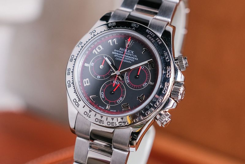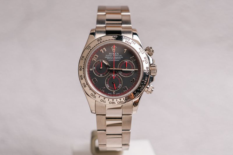 ขนาด 40 มม. หน้าปัด Racing Dial หน้าดำ วงแดง สวยงามมากๆ ตัวเรือน 18k White Gold ทั้งเรือนสภาพดีไม่มีริ้วรอย หนักๆตันๆ ใส่ง่าย หล่อมากๆ