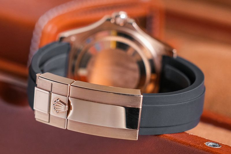 ขนาด 37มม หน้าดำขอบ Ceramic สภาพดีมาก ตัวเรือนทองคำ 18k Pink Gold ทั้งเรือนสภาพดีไม่มีริ้วรอย เครื่องจักรม่วงขัดลายงามๆ สภาพสวยตรวจเช็คเรียบร้อย เม็ดมะยมตรงรุ่น กระจกซัพไฟร์ สายยางดำของแท้ยาวๆครับ บัคเคิ้ล Pink Gold แบบ double lock ครับ