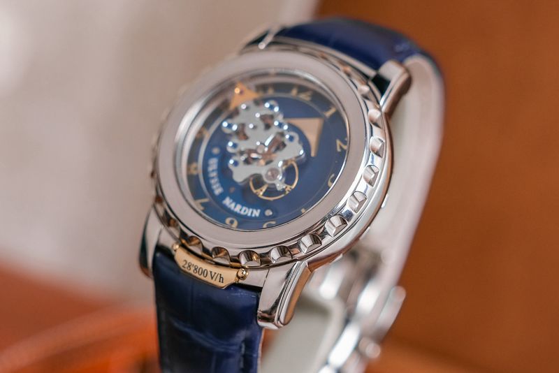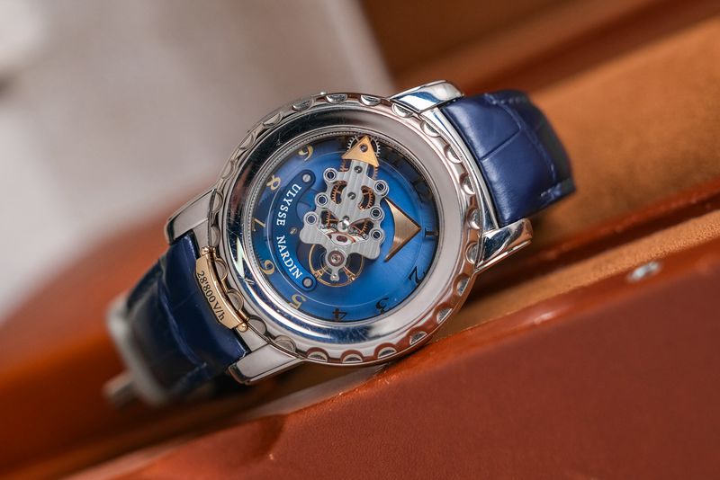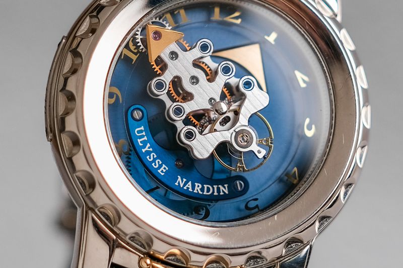 ขนาด 45มม หน้าปัดสีน้ำเงิน พิเศษด้วย Tourbillon 7 Days ที่ออกแบบ Tourbillon ให้เป็นชุดบอกเวลาไปในตัวบนเลย์เอาท์ที่เป็นเอกลักษณ์ ตั้งเวลาหรือขึ้นลานด้วยการหมุนขอบเบเซลหรือฝาหลัง ให้ลุคเหนือระดับด้วยตัวเรือน White Gold และสีน้ำเงินสีฮิตแห่งยุค ถ้าจะหานาฬิกา Tourbillon ที่มีความเร้าใจฉีกกรอบ ต้องยกให้ UN Freak ที่โดดเด่นแปลกตาครับ