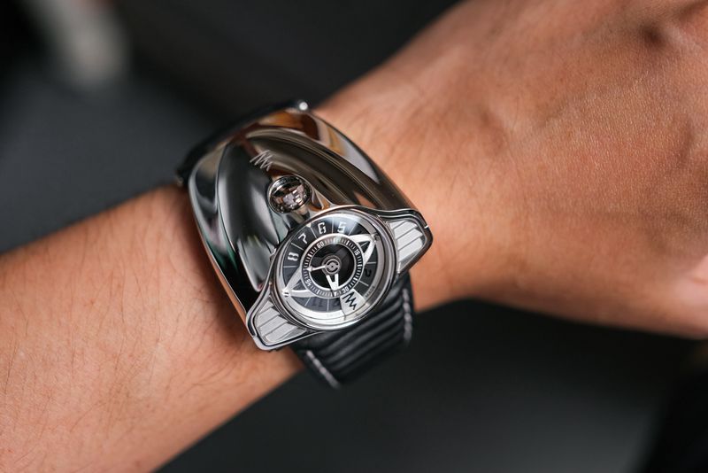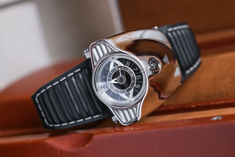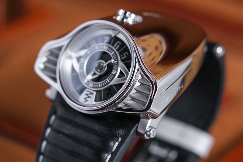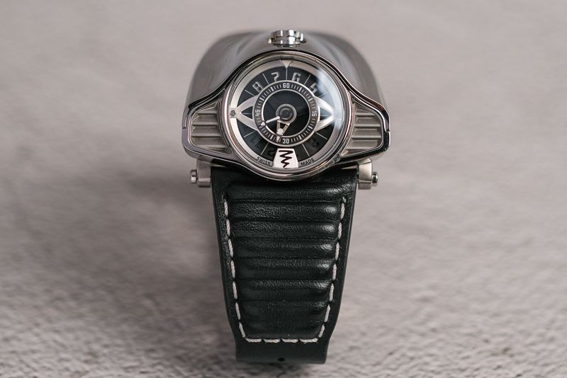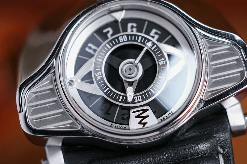 หนึ่งในนาฬิกาที่ดีไซน์ออกมาได้แหวกแนวที่สุด ตัวเรือน Steel เงางามและหน้าปัดสีดำ ออกแบบเหมือนหน้าปัดไมล์รถสปอร์ต ใส่ขึ้นเต็มข้อพอดี หน้าปัดเฉียงเข้าหาตัวทำให้ดูเวลาได้ง่าย ใส่แล้วไม่มีทางเหมือนใครแน่นอน กลไก Automatic เป็น Limited Edition 150 เรือนครับ