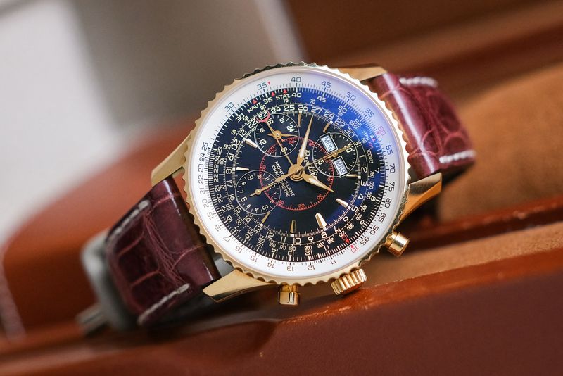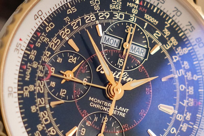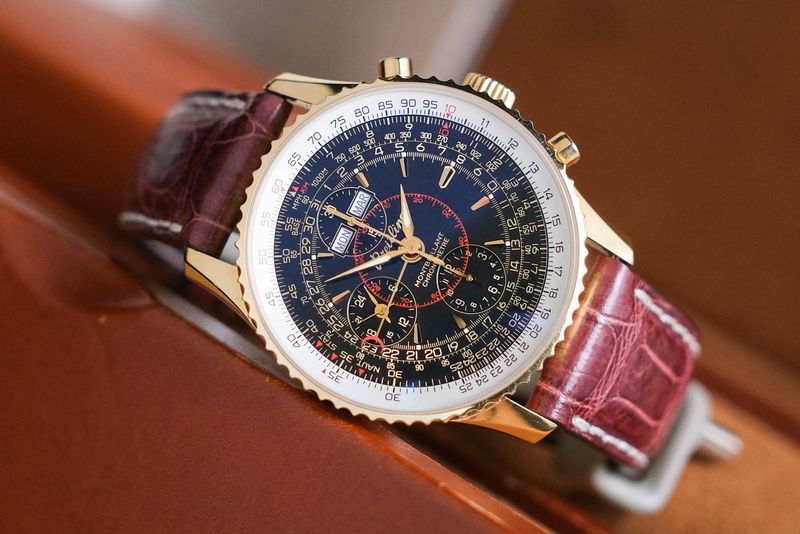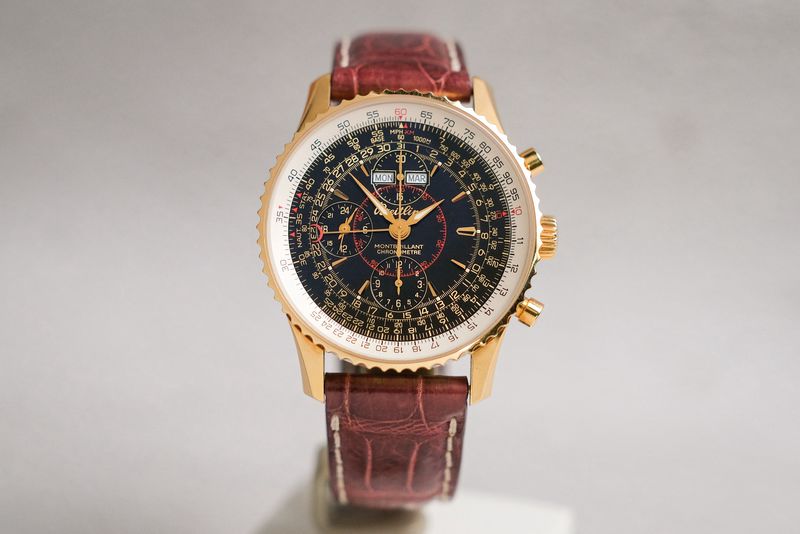 หนึ่งในเรือนที่สะท้อน DNA การบินของแบรนด์ได้ครบที่สุด ด้วยตัวเรือน 18K rose gold ขนาดประมาณ 43mm จับคู่หน้าปัดดำสไตล์วินเทจที่อัดแน่นด้วยรายละเอียดระดับตำนาน ทั้ง slide rule สำหรับคำนวณแบบนักบิน ฟังก์ชัน chronograph และ full calendar (day-date-month พร้อม moonphase) ขับเคลื่อนด้วย Automatic ที่ขึ้นชื่อเรื่องความเสถียรและเซอร์วิสง่าย ความพิเศษยิ่งเพิ่มด้วยสถานะ limited production 100 เรือนทั่วโลก ทำให้เรือนนี้ไม่ใช่แค่สวย แต่เป็น collectible piece ที่ให้ทั้งฟีลคลาสสิกและคุณค่าการสะสมในระยะยาวอย่างแท้จริง