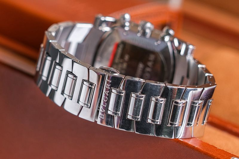 ขนาด 37.5 x 47 mm. หน้าปัด Blue Dial สีน้ำเงินเล่นแสง มีช่องวันที่ ตัวเรือนดีไซน์มาอย่างมีเอกลักษณ์ วัสดุ Steel เงาๆทั้งเรือน สวยงามหรูหรามากๆ มาพร้อมฟังก์ชัน Chronograph เครื่อง Automatic