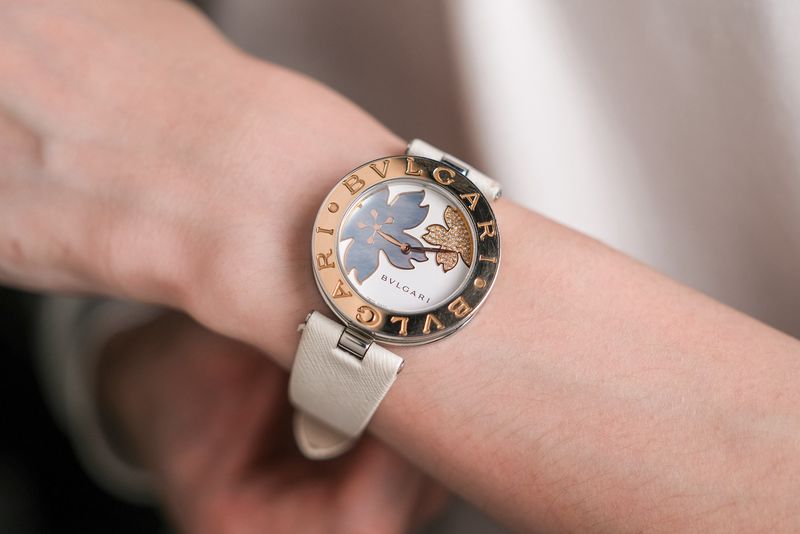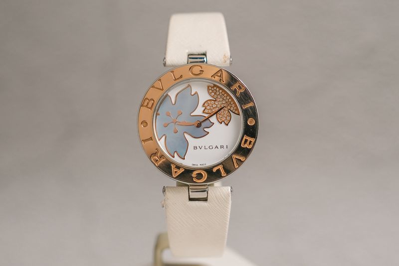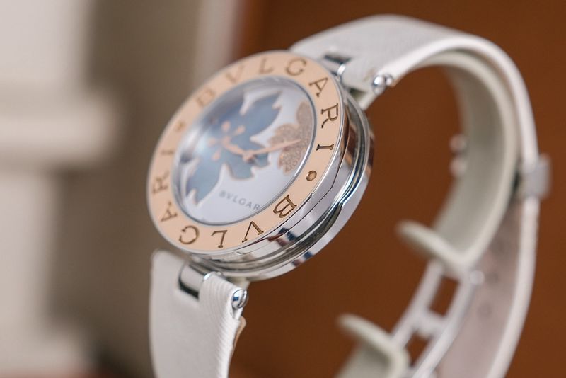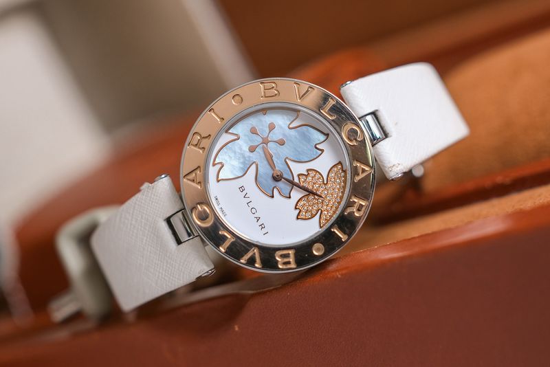 ขนาด 35mm หน้าปัดพิเศษลายดอกไม้ ดอกแรกเป็นไข่มุกสวยงามหรูหรา อีกดอกเป็นทองคำฝังเพชร ระยิบระยับหรูหรา ตัวเรือน 2 กษัตริย์ รูปทรงเอกลักษณ์ของคอลเลคชั่น B.Zero เครื่อง Quartz ใส่กับสายหนังสีขาว ทำให้ลุคหรูหราขึ้นไปอีกขั้นครับ