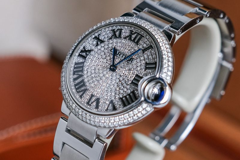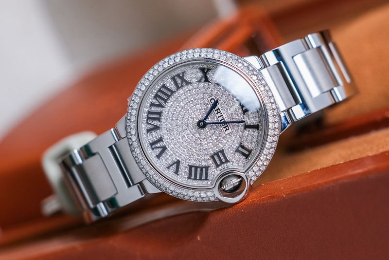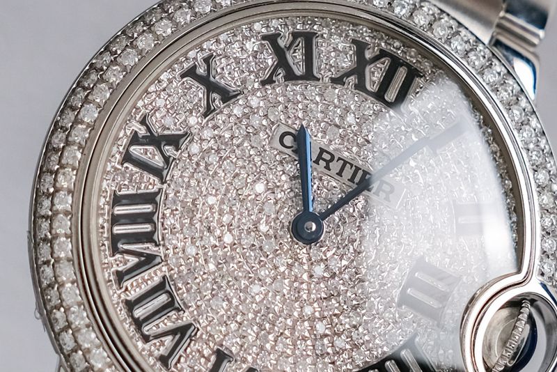 ขนาด 36mm หน้าปัด Diamonds Paved Dial สวยงาม ระยิบระยับ และปราณีตมากๆ หลักโรมันดำ เข็ม Blue Steel ตัวเรือนกลมสวยวัสดุ Steel เงาวาว ใส่ง่ายและหรูสุดๆ เป็นงานฝังเพชร after setting ครับ