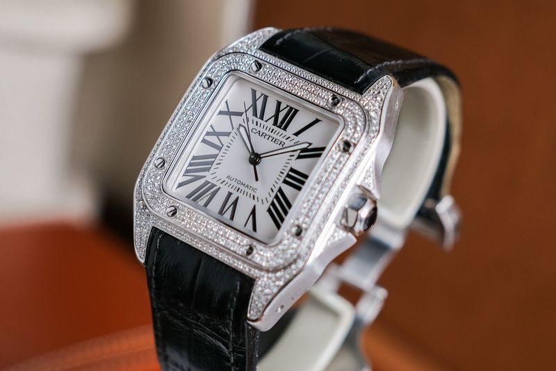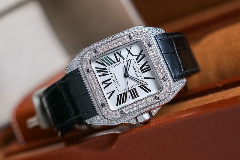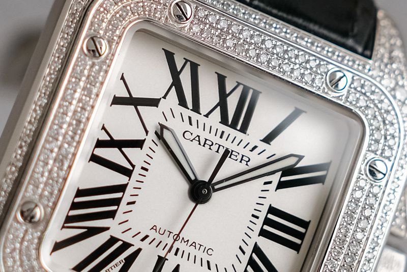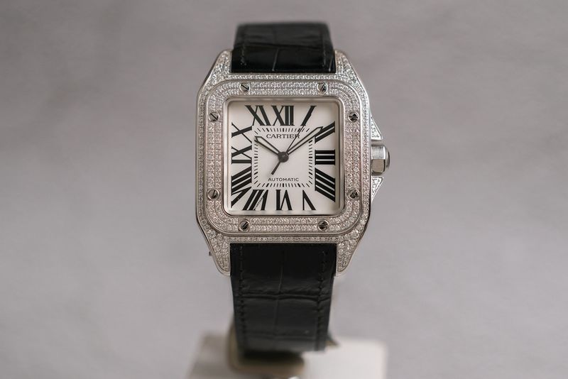 ขนาด 38 x 51mm. XL size. หน้าปัด White Dial. เลขโรมันสวยไม่มีที่ติ ตัวเรือน Steel ด้านบนฝังเพชร After Setting สวยหรู ใส่เต็มข้อ สภาพดีไม่มีริ้วรอยหนัก เครือง Cartier Automatic เดินดีตามมาตรฐานใส่ได้ทุกวัน