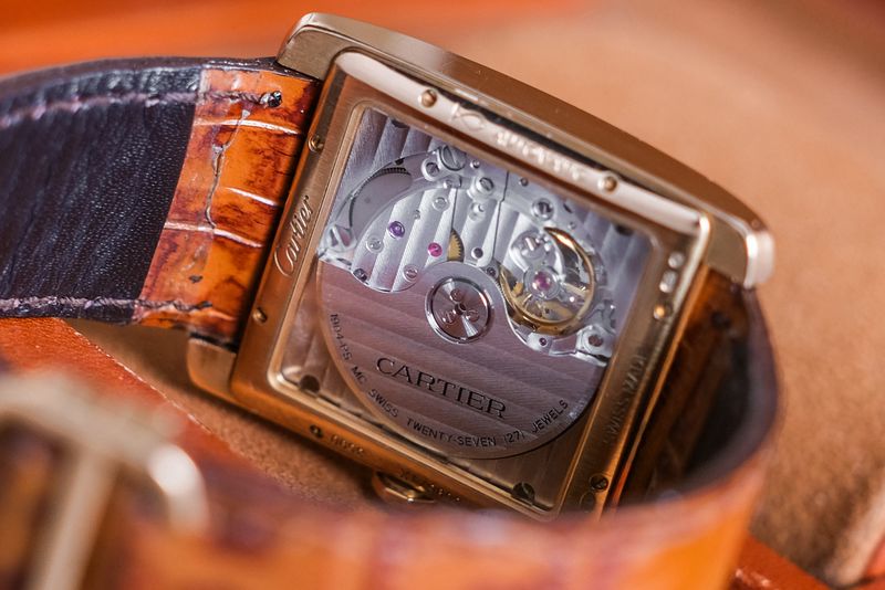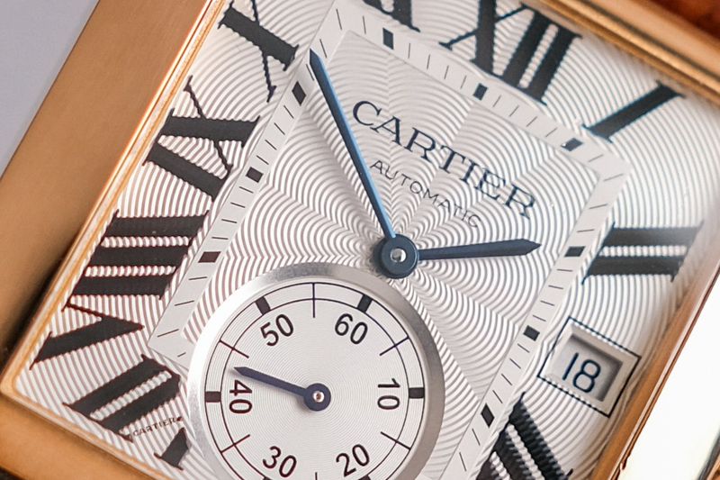 ขนาด 34x33mm. หน้าปัด White Dial หลักโรมันคลาสสิค มีวงเข็มวินาทีขนาดใหญ่ ตัวเรือนทรง 4 เหลี่ยม 18K Rose Gold เงาวาว หลังเปลือยเห็นกลไก Automatic สายหนังจระเข้ให้ลุคคลาสสิคสุดๆครับ