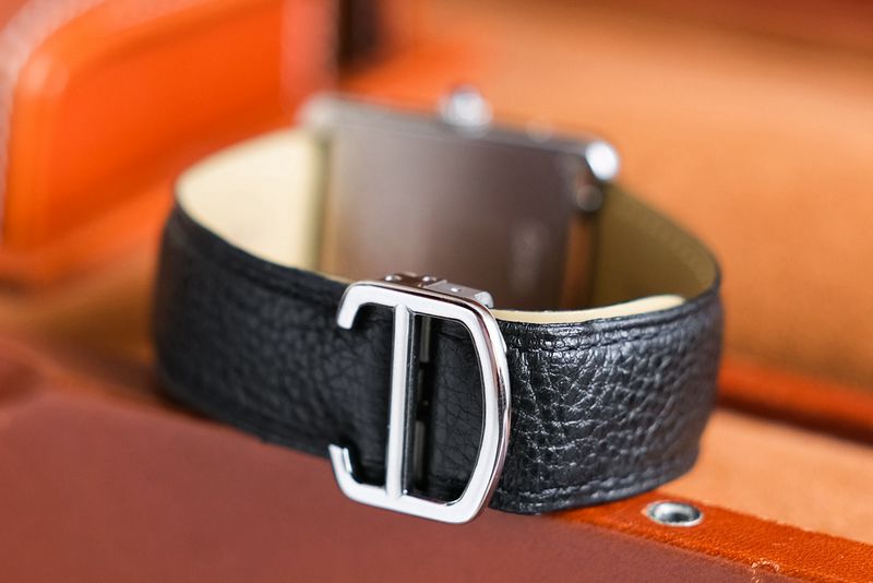 ขนาด 27×35 mm. เป็นไซส์ L หน้าปัด Silver Dial มีช่องวันที่ ตัวเรือน Steel เงางาม ทรงเหลี่ยมเอกลักษณ์ ใส่คู่กับสายหนังสวยๆ เรือนนี้ใส่สวยที่สุดครับ ไซส์กำลังดี ไม่เล็กไป ได้แบรนด์หรูระดับโลกฝังเพชรงามๆ