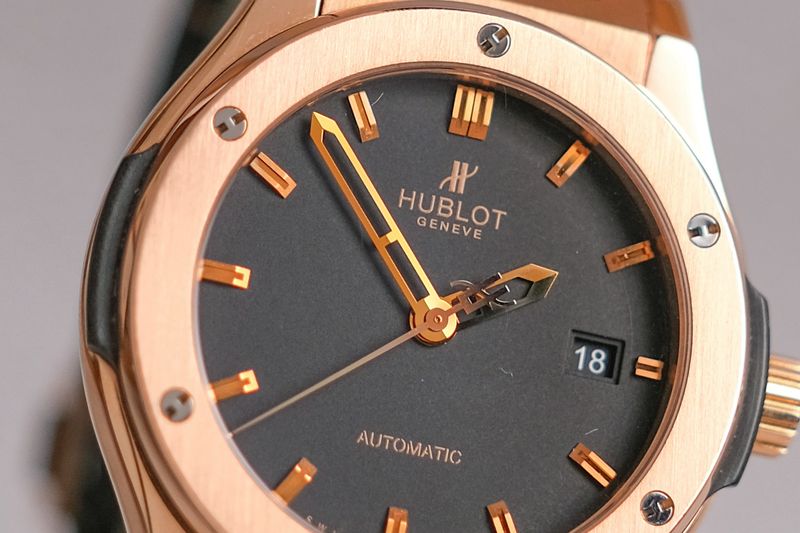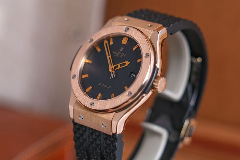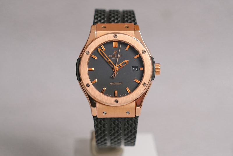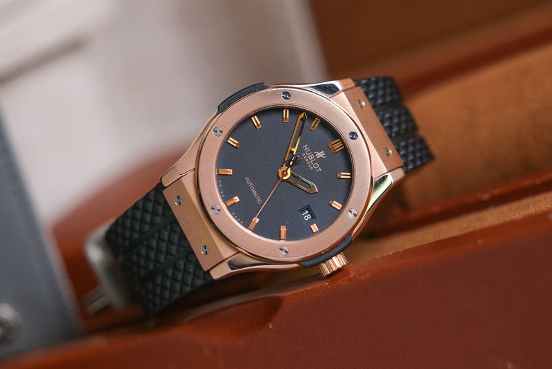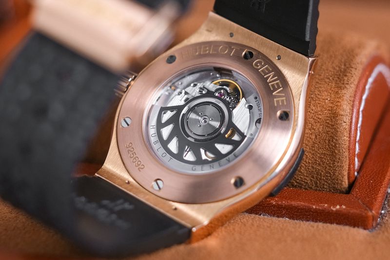 ขนาด 42mm. หน้าปัดลาย Black Dial ทรงสปอร์ตโคตรหล่อ ตัวเรือนทองคำ 18K Rose Gold เงาวาว คุมโทนหรูหรามาดเข้ม หลังเปลือยเห็นกลไก Automatic ใส่คู่กับสายยางคุณภาพสูงใส่โคตรสบายบอกเลยว่า หล่อ เท่ ดุดันไม่เหมือนใคร!
