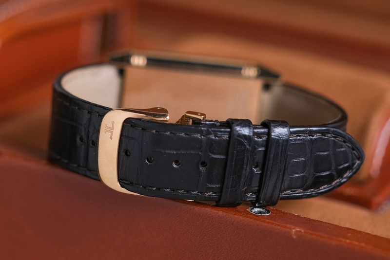 ตัวเรือน Pink Gold ขนาด 46.8 x 27.4 มม. นาฬิกาหรูสายเดินทางที่โดดเด่นด้วยหน้าปัดสองด้านสำหรับบอกเวลาสองไทม์โซน ช่วยให้เปลี่ยนอารมณ์และบุคลิกได้ง่ายในวันเดียวกัน ด้านหน้าหลักเป็นหน้าปัดสีขาวนวลทรงสี่เหลี่ยม ตกแต่งหลักชั่วโมงทอง ดูสุภาพสง่างาม พร้อมฟังก์ชันชั่วโมง-นาทีและ Small Seconds ขณะที่ด้านหลังเป็นหน้าปัดสีดำลาย Clous de Paris ธีมกลม ให้ลุคแมนสุขุม พร้อมฟังก์ชัน GMT และ Day/Night Indicator แบบ 24 ชั่วโมง ขับเคลื่อนด้วยกลไกไขลาน Cal. 854A/2 สำรองพลังงาน 45 ชั่วโมง ผ่านมาตรฐาน Master Control 1,000 ชั่วโมง สะท้อนแนวคิดของชีวิตที่มีมากกว่าหนึ่งด้านได้อย่างสมบูรณ์แบบ