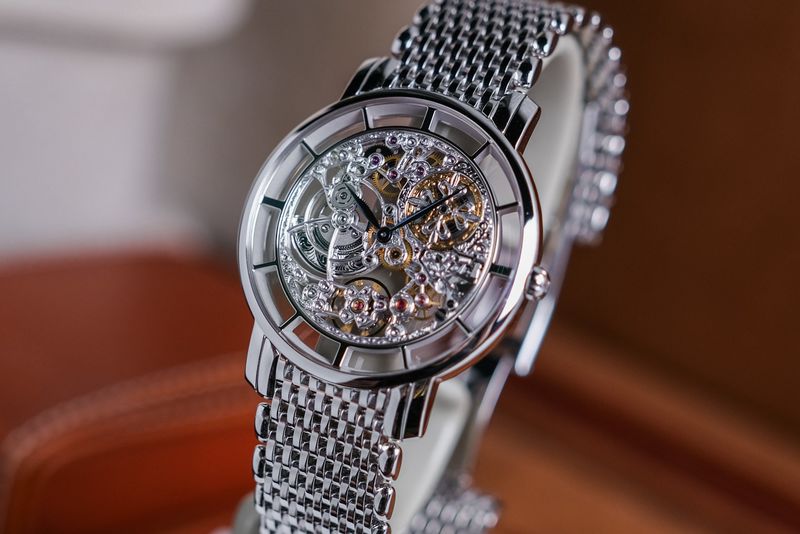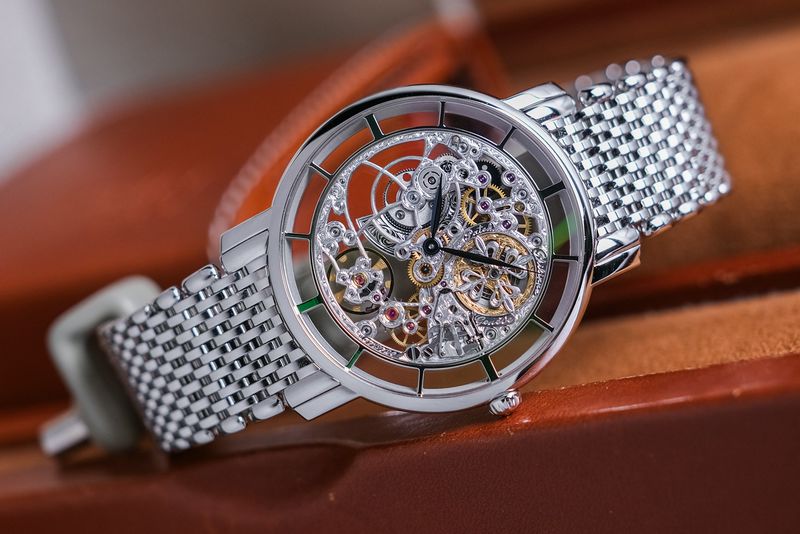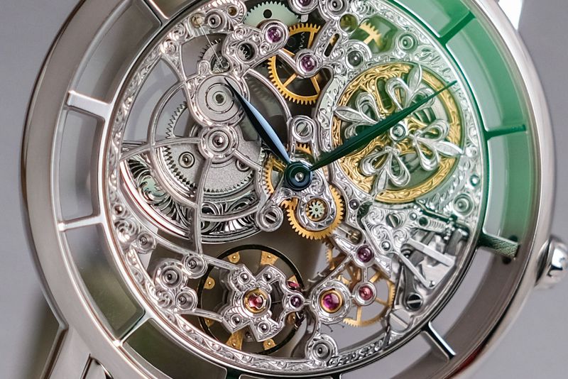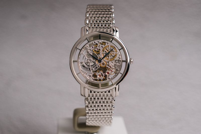 ขนาด 39มม หน้าปัด Skeleton Dial ดีเทลทองคำแกะลายทั้งหน้า สวยงามดั่งงานศิลป์ ตัวเรือนบางเพียง 7มม ใส่สวยมาก เป็นกระจก Sapphire สองด้าน สวยใส ตัวเรือนและสายเป็นทองคำ 18K White Gold ตันๆเงางามทั้งเรือน เครื่อง Automatic ครับ
