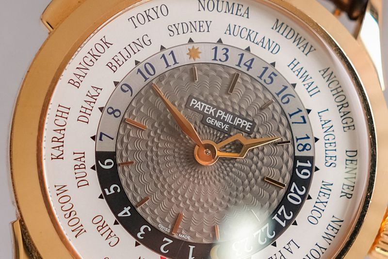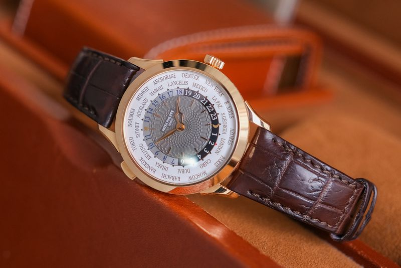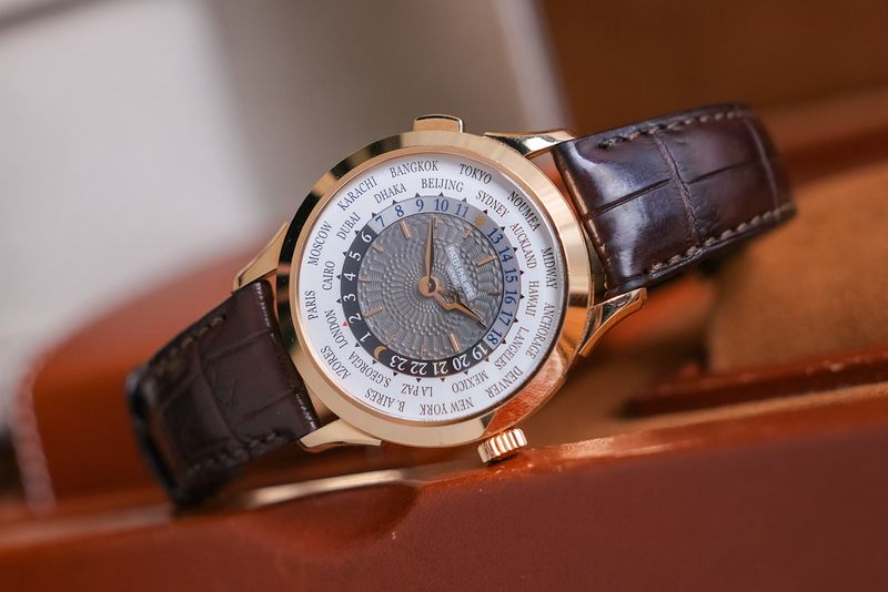 ขนาด 38.5mm. หน้าปัด สีขาวและเทา แกะลายดีเทลสวยงาม ตัวเรือน 18K Rose Gold งานละเอียดเนียนๆ เหมาะมากสำหรับหนุ่มสาวข้อมือปานกลาง เครื่อง  PP Automatic ขัดลาย Cote de geneve งามๆ พร้อมฟังชั่นยอดนิยมอย่าง World Time เดินดีตามมาตรฐานใส่ได้ทุกวัน