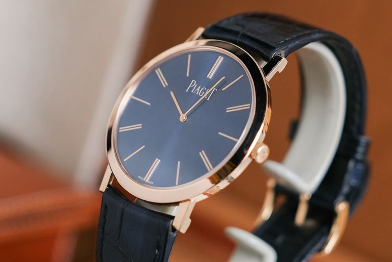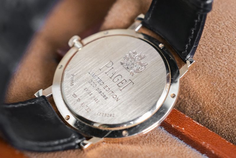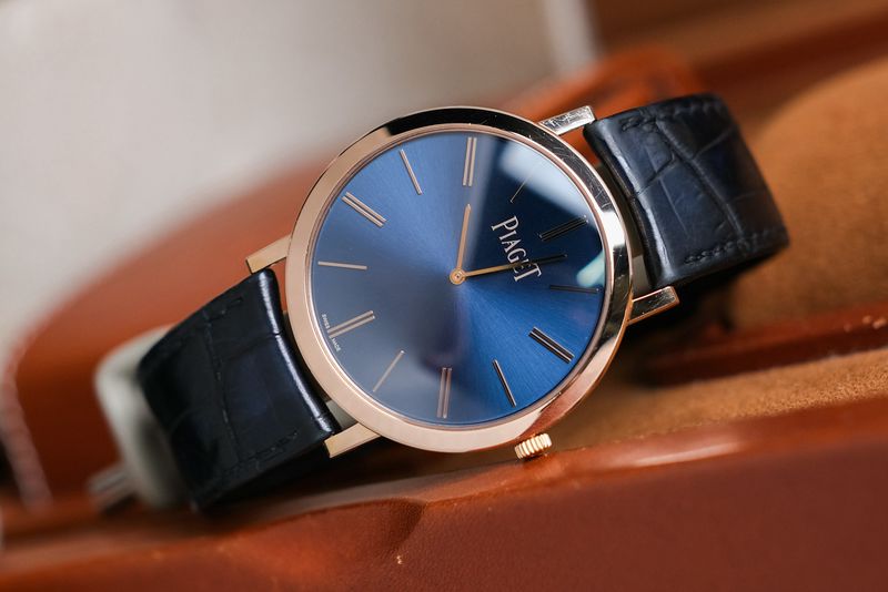 ขนาด 38mm Blue Sunburst Dial หลักชั่วโมงและชุดเข็มทองคำ ตัวเรือนทำจากทองคำ 18K Rose Gold บางแบบ Ultra Thin สวยงาม ออร่ามากๆ เครื่องไขลาน เป็น Limited Edition ผลิตเพียง 300 เรือน