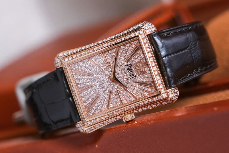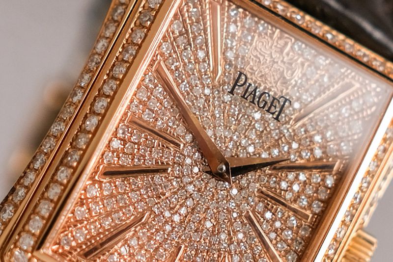 ขนาด 29 x 40 มม หน้าปัด Rose Gold Diamond Dial มาพร้อมเข็มทองคำ หลักโรมันคลาสสิค มาฟังก์ชัน Chronograph ตัวเรือนทองคำ 18K Gold ทรงเหลี่ยมขอบมนสุดเอกลักษณ์ หลังทึบ ได้เครื่อง Automatic ใส่กับสายหนังจระเข้เดิม บัคเคิลทองคำ