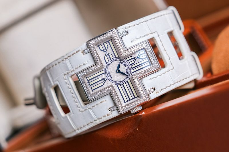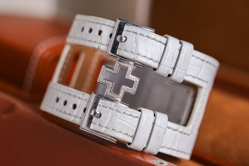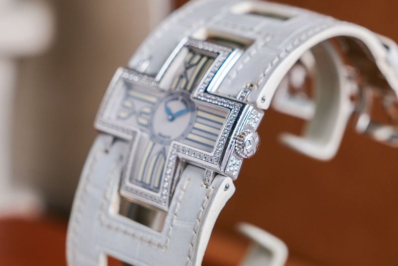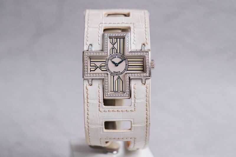 สวยทุกมุมมอง ขนาด 39มม. ตัวเรือนเป็น 18k White Gold สวยงามไร้ริ้วรอย ดีไซน์ทรงเครื่องหมาย Plus ออกแบบมาเป็นอย่างดี ขอบฝังเพชร Original น้ำงามๆ หน้าปัดสีครีมแกะลายสวยมาก อีกหนึ่งเอกลักษณ์คือได้สายหนังแบบพิเศษเฉพาะรุ่นนี้เท่านั้น เป็น Limited 888 เรือนครับ!
