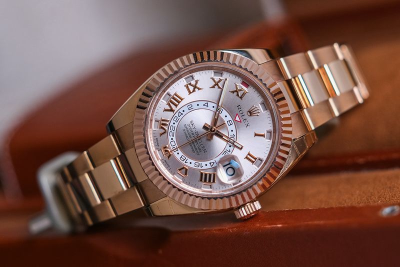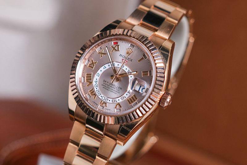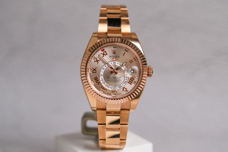 ขนาด 44mm. หน้าปัด Silver Sunburst Dial. สวยคลาสสิค ตัวเรือนทองคำ 18K Rose Gold สวยคม ขอบหยักทองคำ มีกลไกที่ซับซ้อนมากที่สุด ฟังชั่น 2 timezone, day, month, annual calendar สามารถหมุนขอบเพื่อปรับตั้งต่างๆได้รวดเร็วครับ เป็นอีกรุ่นที่ผลิตออกมาได้สวยและโดดเด่นครับ